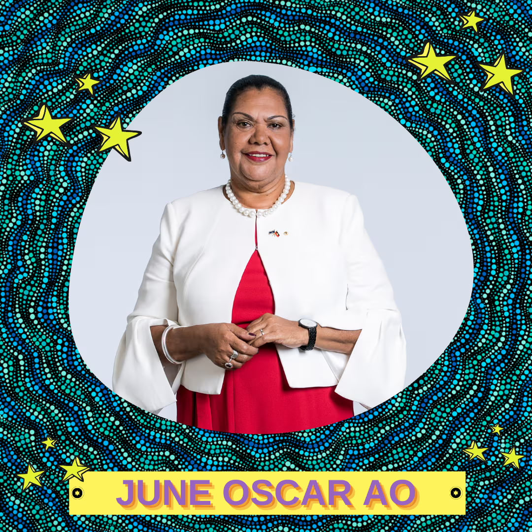 June Oscar AO is a proud Bunuba woman from the remote town of Fitzroy Crossing in Western Australia’s Kimberley region. She is a strong advocate for Indigenous Australian languages, social justice, women’s issues, and has worked tirelessly to reduce Fetal Alcohol Spectrum Disorder (FASD).