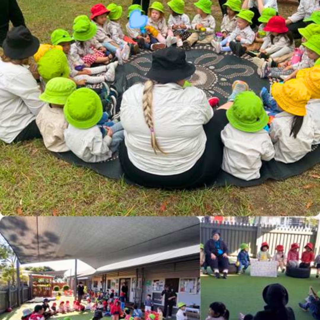 When the children hear the tapping sticks outside they all know to take themselves to the yarning circle to have a yarn and pay their respects to our Awabakal people.