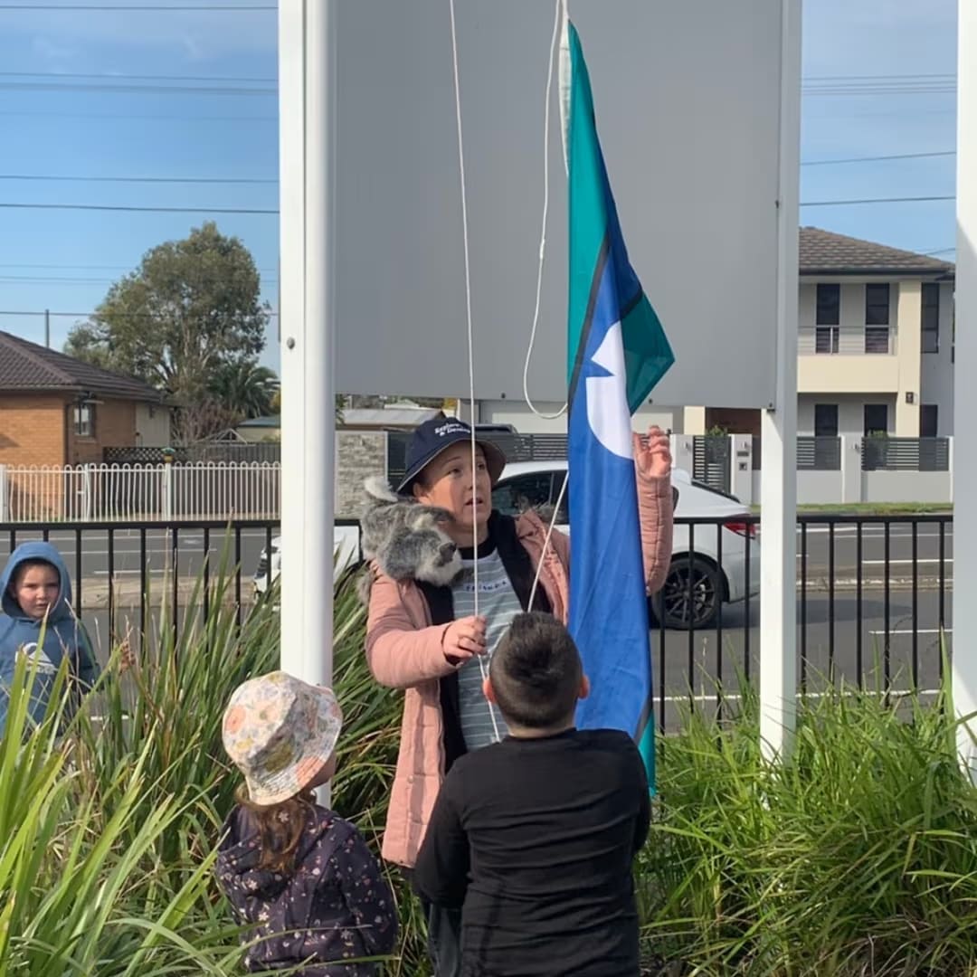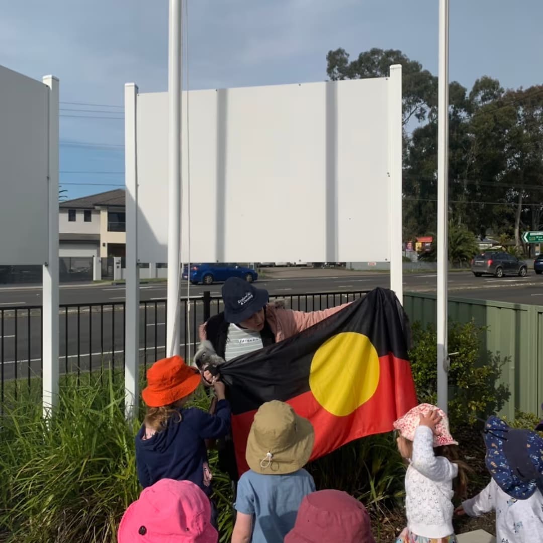 They also took Dunggiir out to the flag poles where they proudly flew the Aboriginal, Australian and Torres Strait Islander flags.