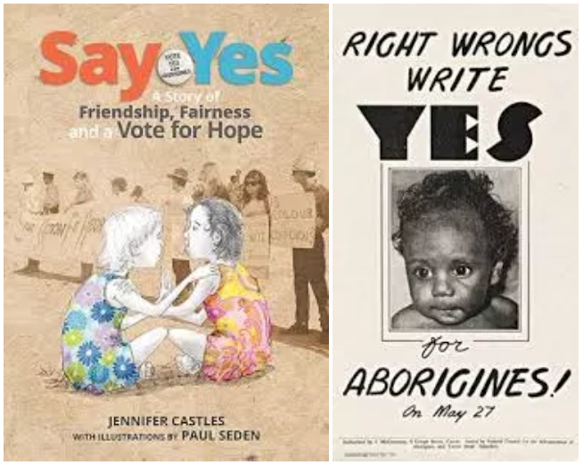 In the week leading up to Reconciliation Week we read it as a group at a Team Meeting. The beauty of this book is the beautiful story of two young girls is accompanied by illustrations including newspaper clippings and passages of legislation about the referendum. These illustrations can be read by the older reader or left when reading to young children.