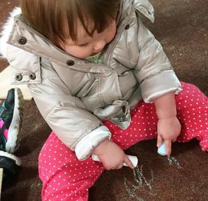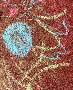 The chalk also made its way outside for further experimentation on the floor! The colours looked bold on the terra-cotta coloured textured ground.
