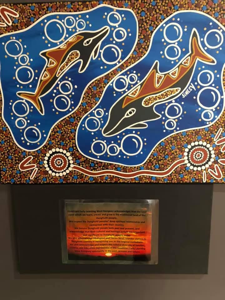 We had a great time visiting Goodstart West Kempsey and learning about their Reconciliation journey. This service has a 40% enrolment of Aboriginal and Torres Strait Islander families who regularly share their culture and knowledge with the educators and children at the service. Some of the families have created a mural that features in the nursery outdoor learning space which reflects the native birds and plants found in the area. Relationships are definitely a strength at this service and at the core of everything they do.