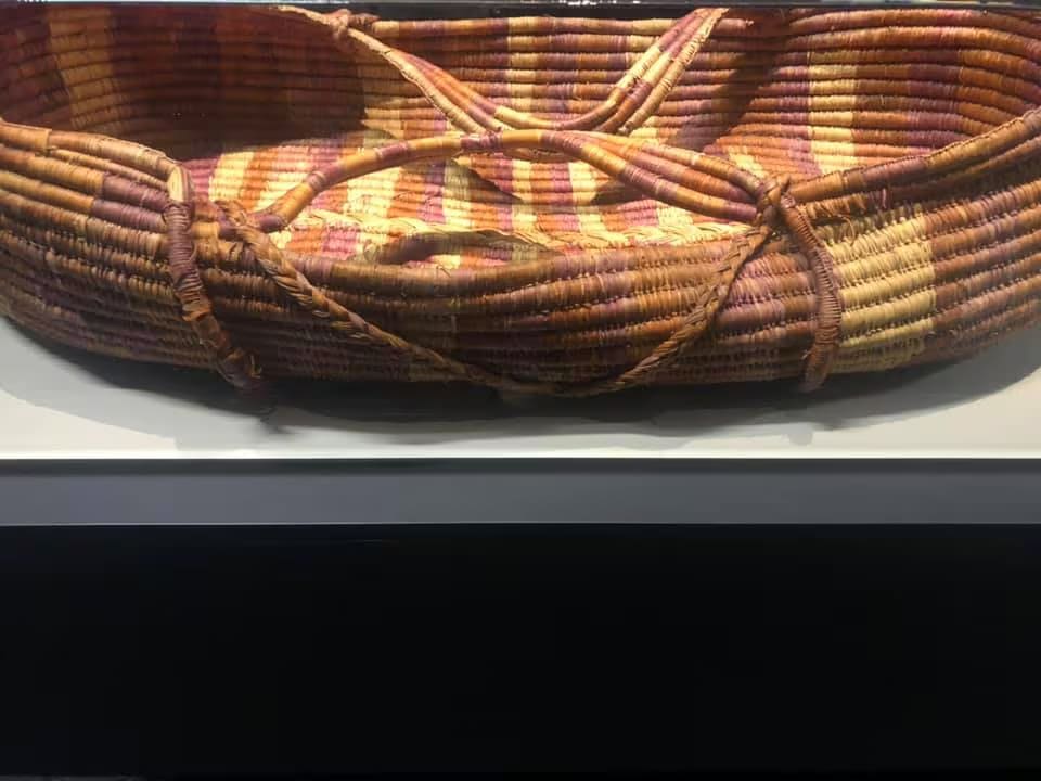 During our visit to the Slim Dusty Museum we learnt about his relationship with the Peppimenarti people, the traditional custodians in the Daly River region of the Northern Territory. Joy Kirkpatrick, Slims Wife wrote the song Peppimenarti Cradle about the hand dyed woven basket, which was given to her to use for her daughter Anne by Regina Pilawuk Wilson of the Peppimentari community.