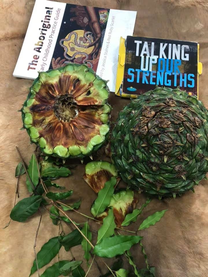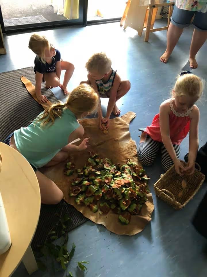 The next day I shared my foraged goodies with the educators and their children at Goodstart West Kempsey. The group had a good time gathering the nuts from the pine once it had been split open. Whilst our first cooking attempt failed it lead to further learning about the different species of Bunya and cooking methodologies needed.