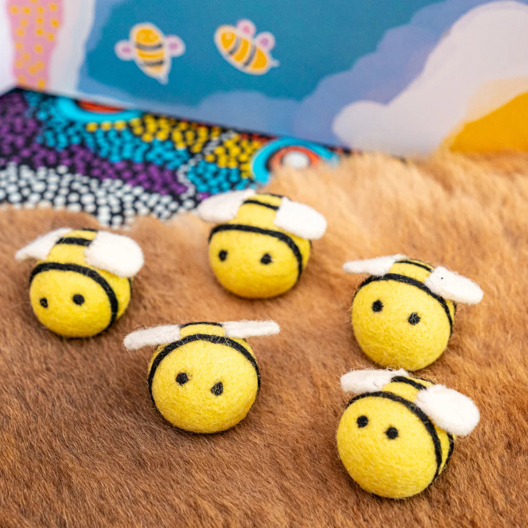 Small felt bees in a set of 5. These little felt bees are ideal for Loose Parts Play and Small World Play.