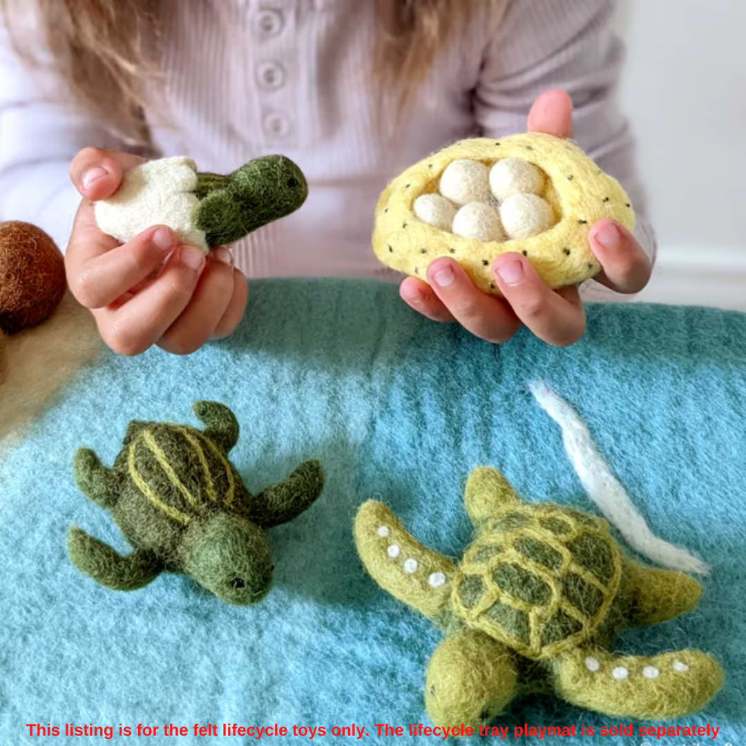 The green sea turtle is found in Australia's oceans and is one of the largest turtles in the world. These gorgeous turtle life cycle toys have been needle-felted and great for small world play and silk play.