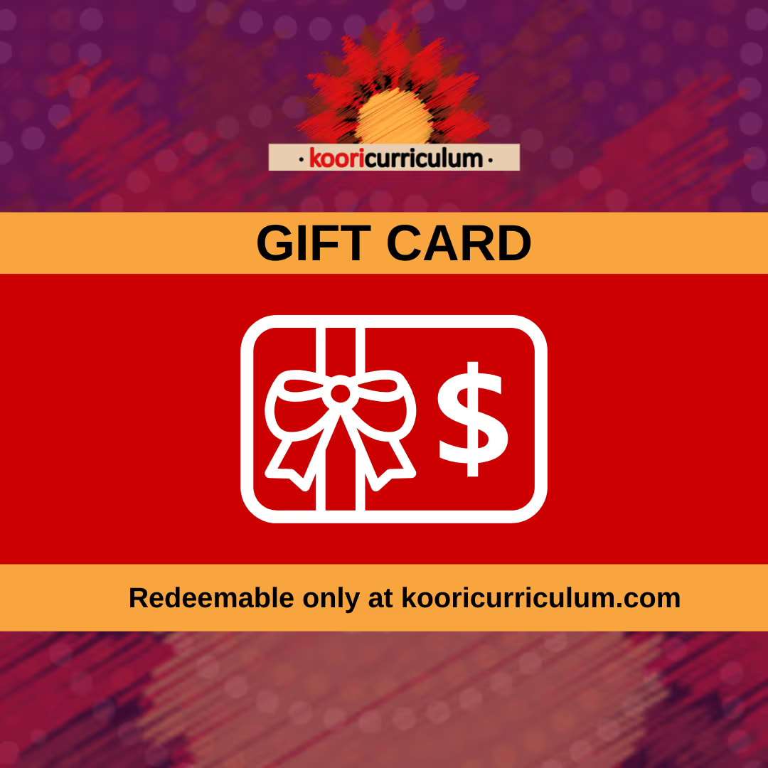 Koori Curriculum gift cards can be used on any of our online store items including webinars, books, textiles and more!
