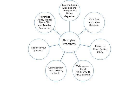 My Mum suggested that we speak to David Watkins and Michelle Hamilton the Directors of Wunanbiri pre-school at Alexandria. David and Michelle were very willing to share and guide us on our journey, we sat together one afternoon and developed a web of avenues that we could persue to begin connecting with our local Aboriginal community and how we could include Aboriginal perspectives into our program. Our web looked something like this…..
