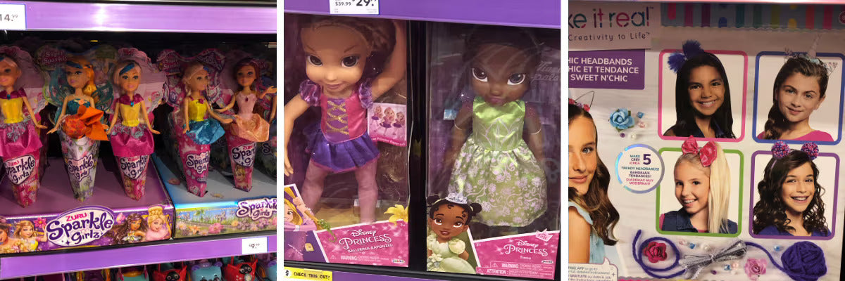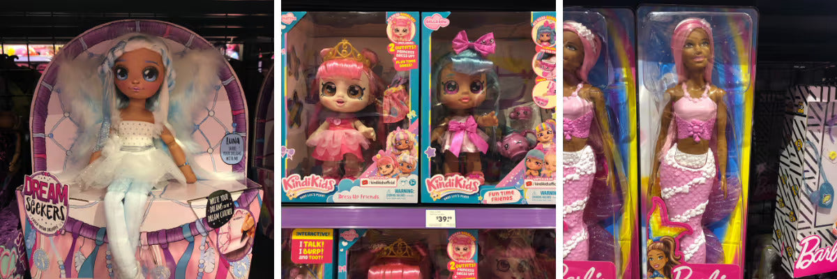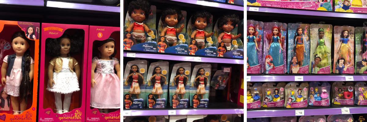 To say their doll range was extensive would be an understatement. They had many lead brands represented in store such as L.O.L, Disney, Baby Alive, Barbie and Baby Born. I would say about half of these brands had black presenting dolls available but few used culturally diverse children in their packaging and marketing materials.