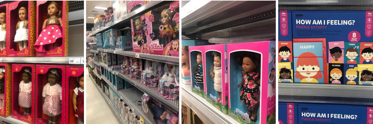 Back in the day when I was a kinship carer I spent countless hours scanning the shelves of Kmart trying to find dolls and toys that reflected the appearance of my kinship daughter to no avail. To say that I was pleasantly surprised when I rounded the corner into the toy section this week would be an understatement. I could not believe how far this toy chain had come.