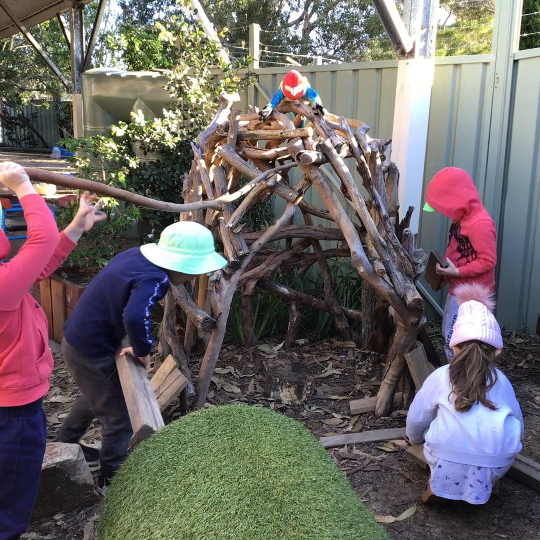 A group of children decided to build Tunang a shelter, gathering wood and leaves together and building them up into a Gunyah. They also built her a little camp-fire. This reminded them that our Campfire Day was coming up soon and off they went, taking Tunang on a 'kindling gathering' adventure!!