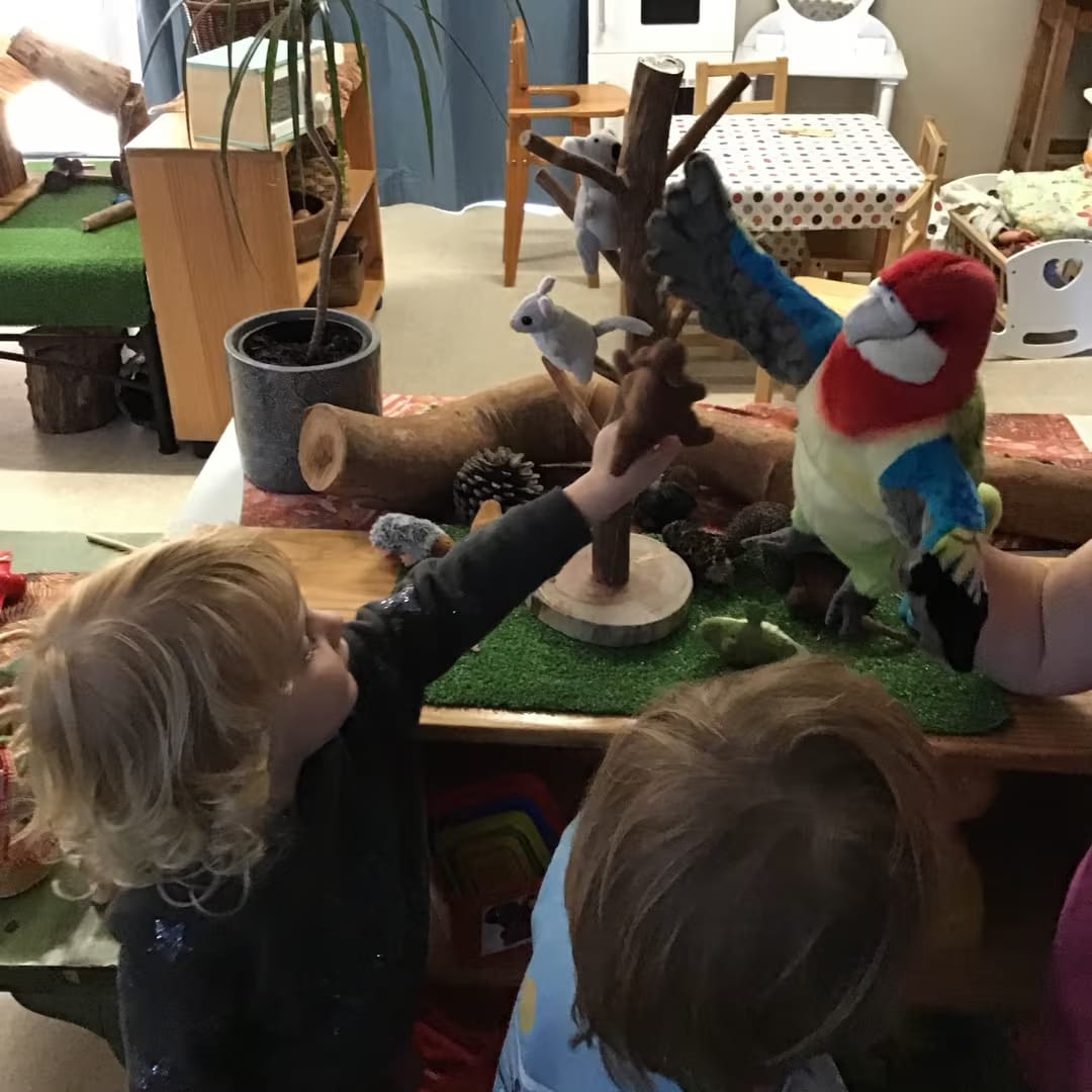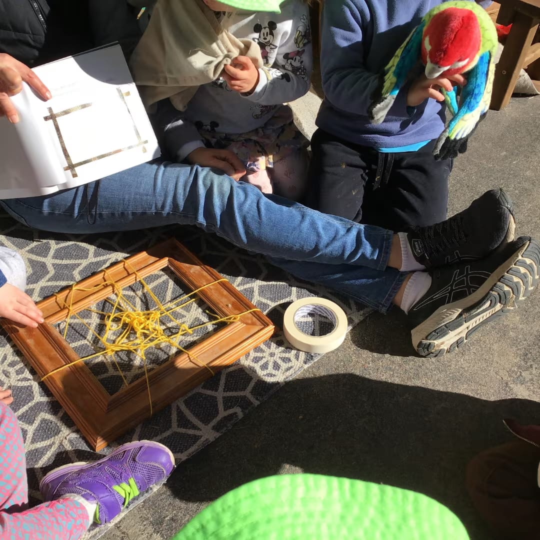 Some days Tunang would stay inside, and other days she joined the children on their outdoor adventures, singing and dancing with the tapping sticks, painting leaves or building spiders webs with string.