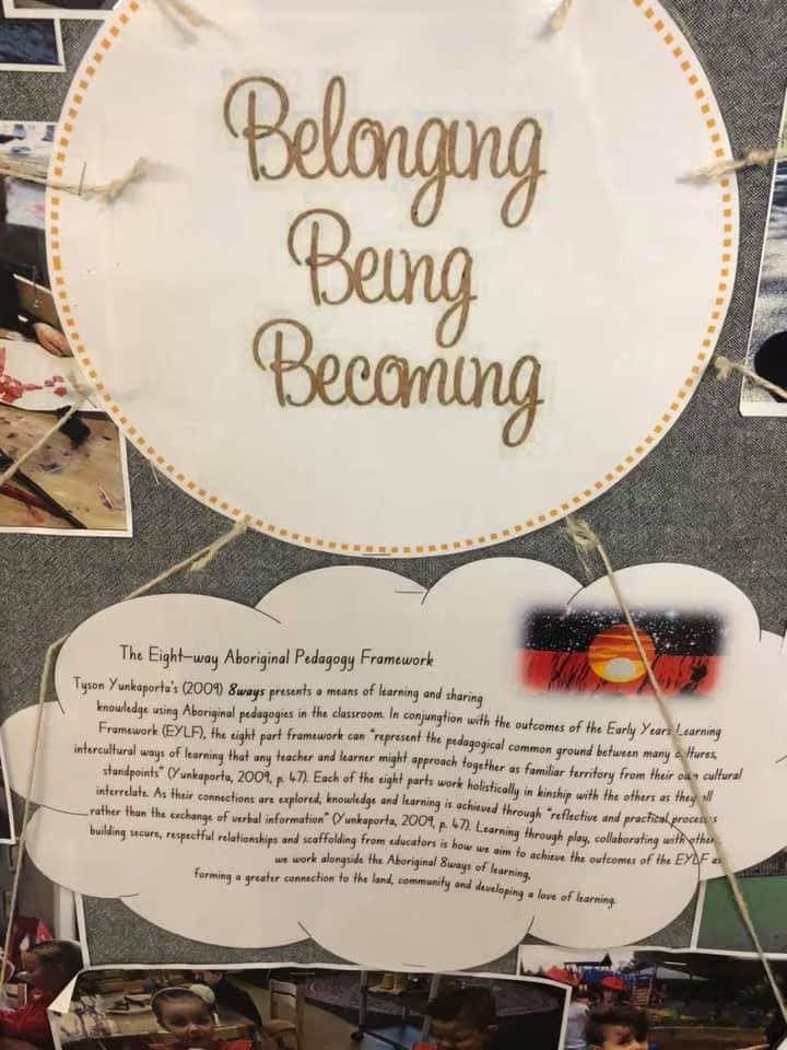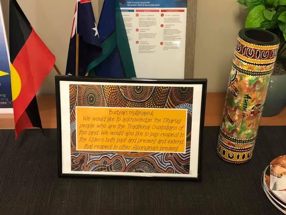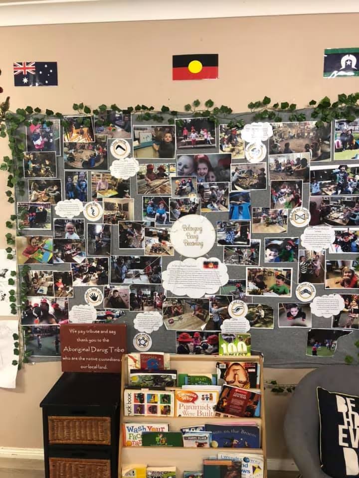 Each of the early learning centres that we visited prided itself on displaying respectful acknowledgements of country in their service. Each of these acknowledgements were a symbol of the many ways that the educators and children show their respect to the traditional custodians of the land on which they are based, namely the Dharawal, Gadigal and Darug people.