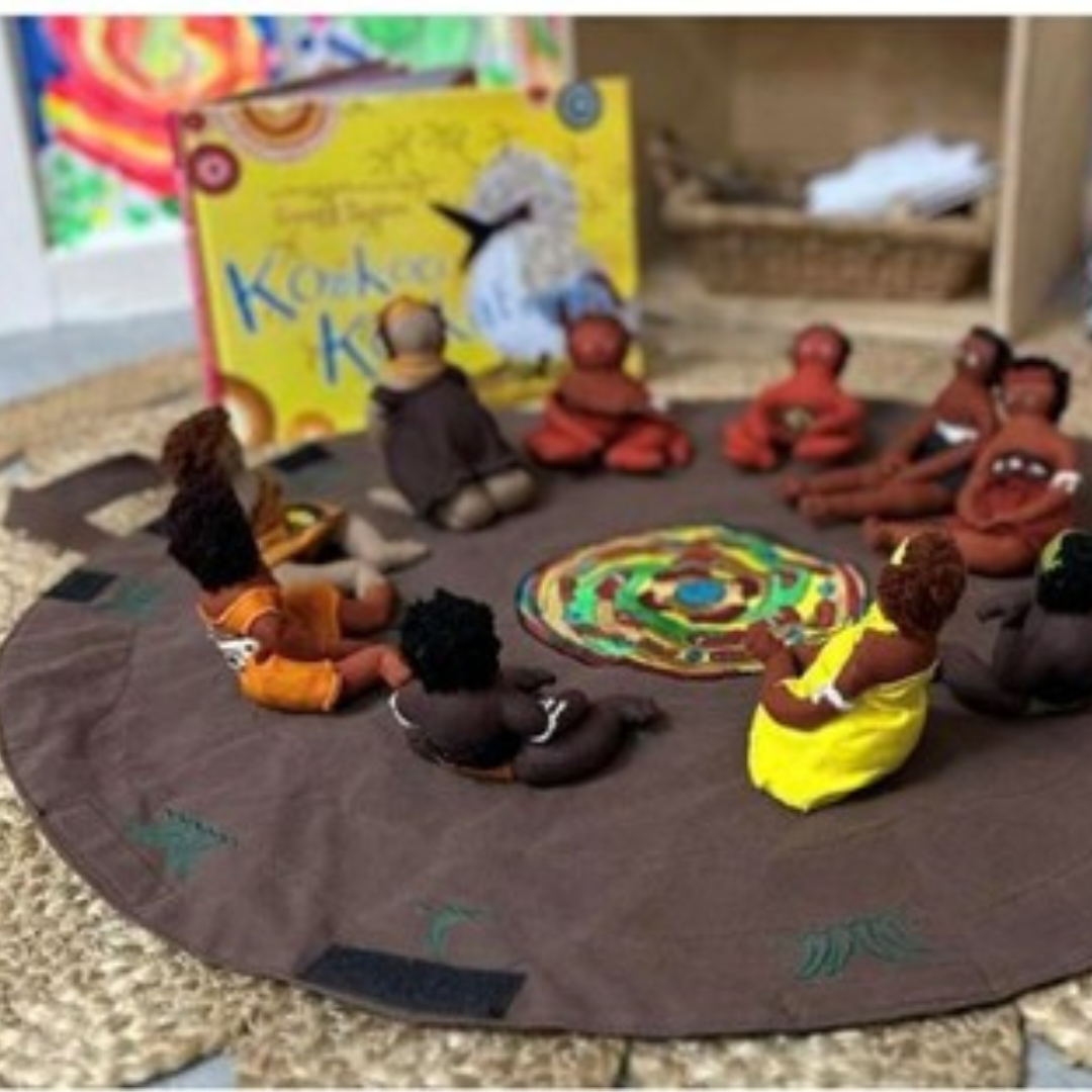 (Daily Journal Snippet) This morning for group time Bec shared some new Aboriginal stories and finger puppets with the kookaburras. Funny enough our story today was called Koko kookaburra. Koko kookaburra was a Dreamtime story about why the kookaburra laughed and continued the saying that kindness is like a boomerang when it goes out it is certain to come back. This was after Koko was laughing AT his friends rather than laughing WITH his friends. We had discussions about the difference between laughing with our friends and laughing at them, with most of the kookaburra children agreeing its better to laugh with our friends than at them. We linked this into our bucket story throughout questioning if Koko and his friends had full buckets or empty buckets. Later several of Becs new Dreamtime stories along with animal finger puppets were placed on the table for the kookaburra children to explore." - Bec Hetherington