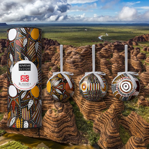 3 Pack Christmas Baubles featuring artwork reproduced under license by Jilamara Arts & Craft Association.