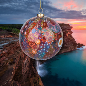 Experience the enchantment of the holiday season with exquisite Women's Ceremony Christmas baubles adorned with breath-taking artwork by renowned Aboriginal artist, Michelle Possum. Each bauble captures the essence of Indigenous culture, weaving together vibrant colours and ancient symbols to create a truly mesmerizing and meaningful addition to your festive décor.