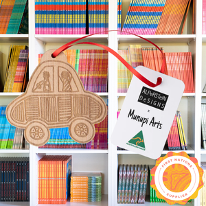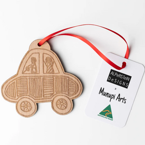 Bring an inspiring touch to your home with this beautiful Hanging Car Decoration. Made in Australia, this unique wood decoration displays the eye-catching artwork of renowned Aboriginal artist Debbie Coombes.