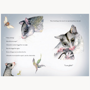 The story tells of a baby glider that gets separated from her mother but eventually finds her way home. This book was put together by two people who share their passion for the Mahogany Gliders.
