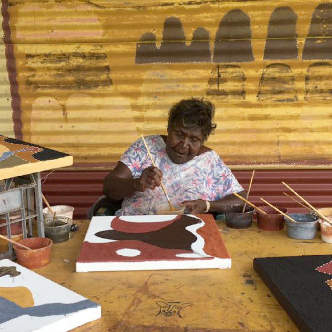 Shirley Purdie is a Gija woman and one of Australia’s most acclaimed contemporary Indigenous artists. Based in Warmun in the East Kimberley, Shirley’s work reflects Gija law, Country, and stories passed down from her Elders. Her art has been exhibited nationally and internationally, and she is recognised not only for her distinctive visual style but also for her role in preserving and sharing Gija culture through visual storytelling.