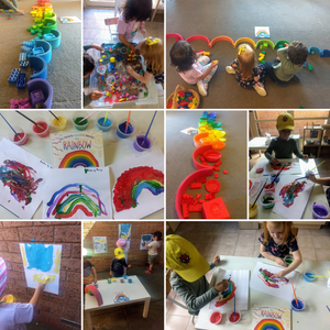 "I want to share with you a lovely work that my children did last week. I run a Family Day Care, my children and I love reading stories and we really enjoy Ros Moriarty and Balarinji books. Personally, I believe books are a fantastic educational resource. Books are versatile and educators can develop so many different activities to extend the reading. Last week, my children and I were exploring sensory bins, painting and construction activities inspired by The Rainbow book. And, of course, the book was part of our daily story time."