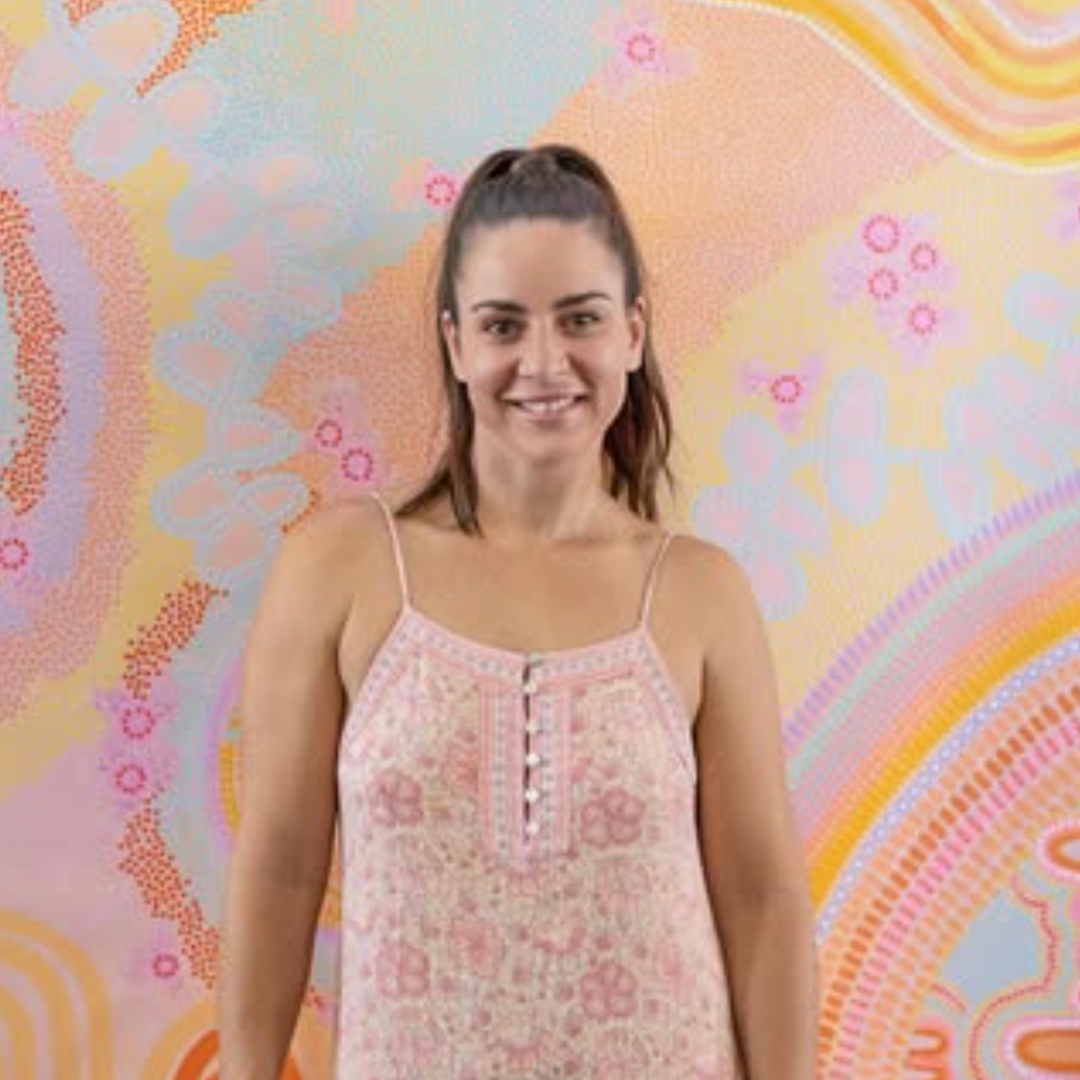 She began painting as a way to connect with her culture and community and with the help and guidance of her elders. She quickly realised that it has always been an innate part of her. Being able to continue this sacred tradition is something she cherishes and is deeply grateful for.