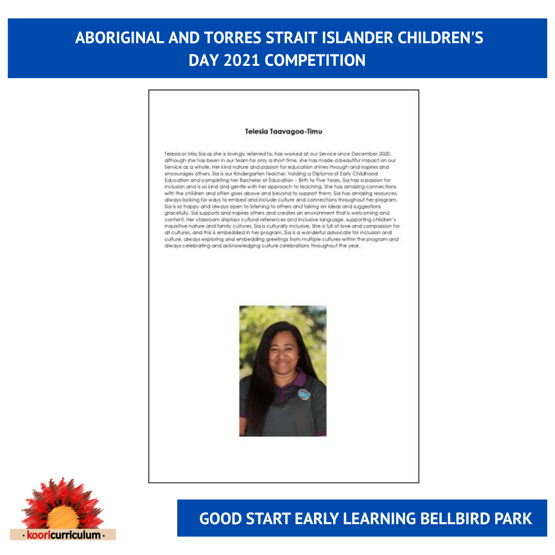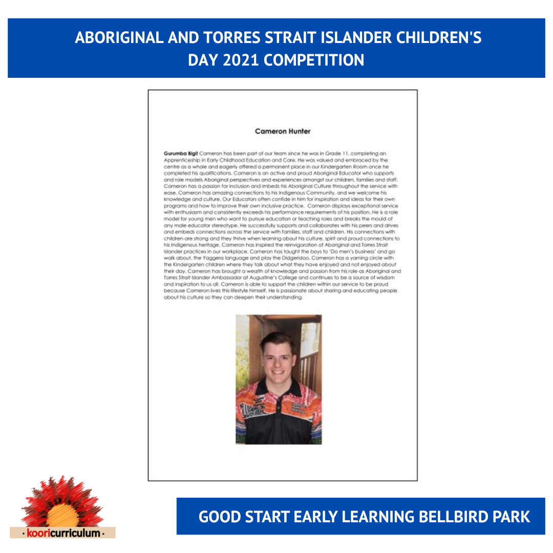 In celebration of Aboriginal and Torres Strait Islander Children's Day, we are asking our community to nominate an Educator who supports our children to be "Proud in culture, strong in spirit".