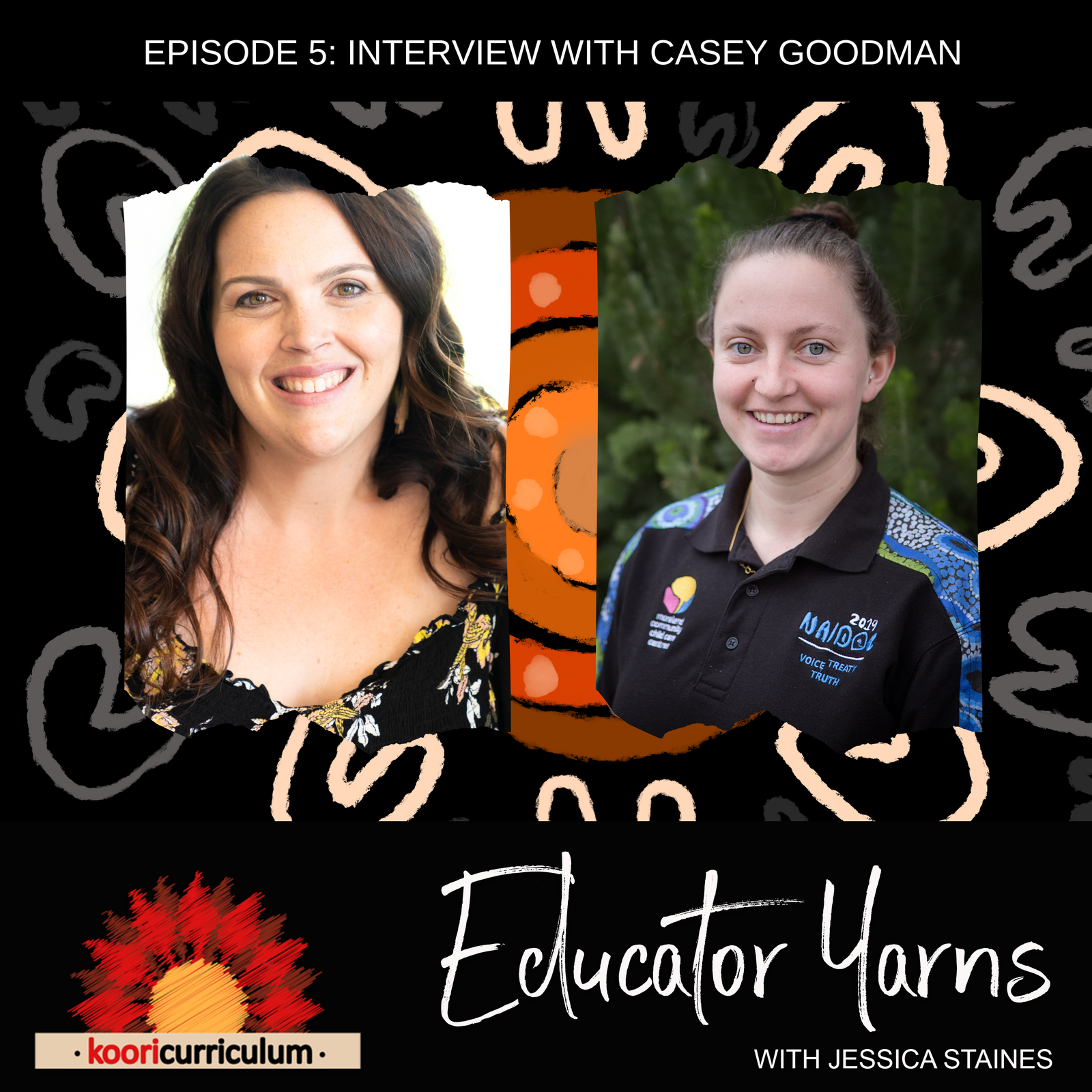 In episode 5 of Educator Yarns, Jessica speaks with Casey Goodman, from Wurundjeri Land in Brunswick Melbourne.