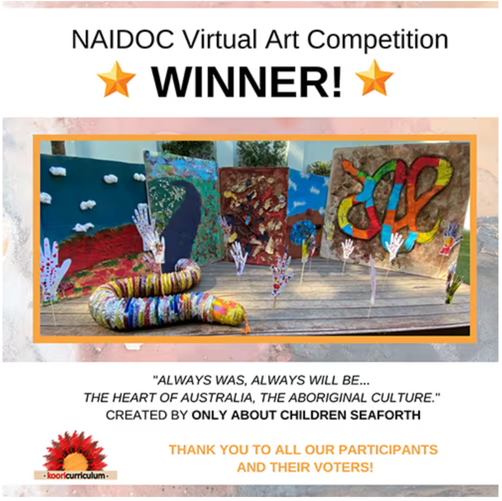 In the spirit of NAIDOC we have decided to hold a virtual art competition for early learning services. We are inviting centres to create their own art work with children that reflects this years NAIDOC theme.