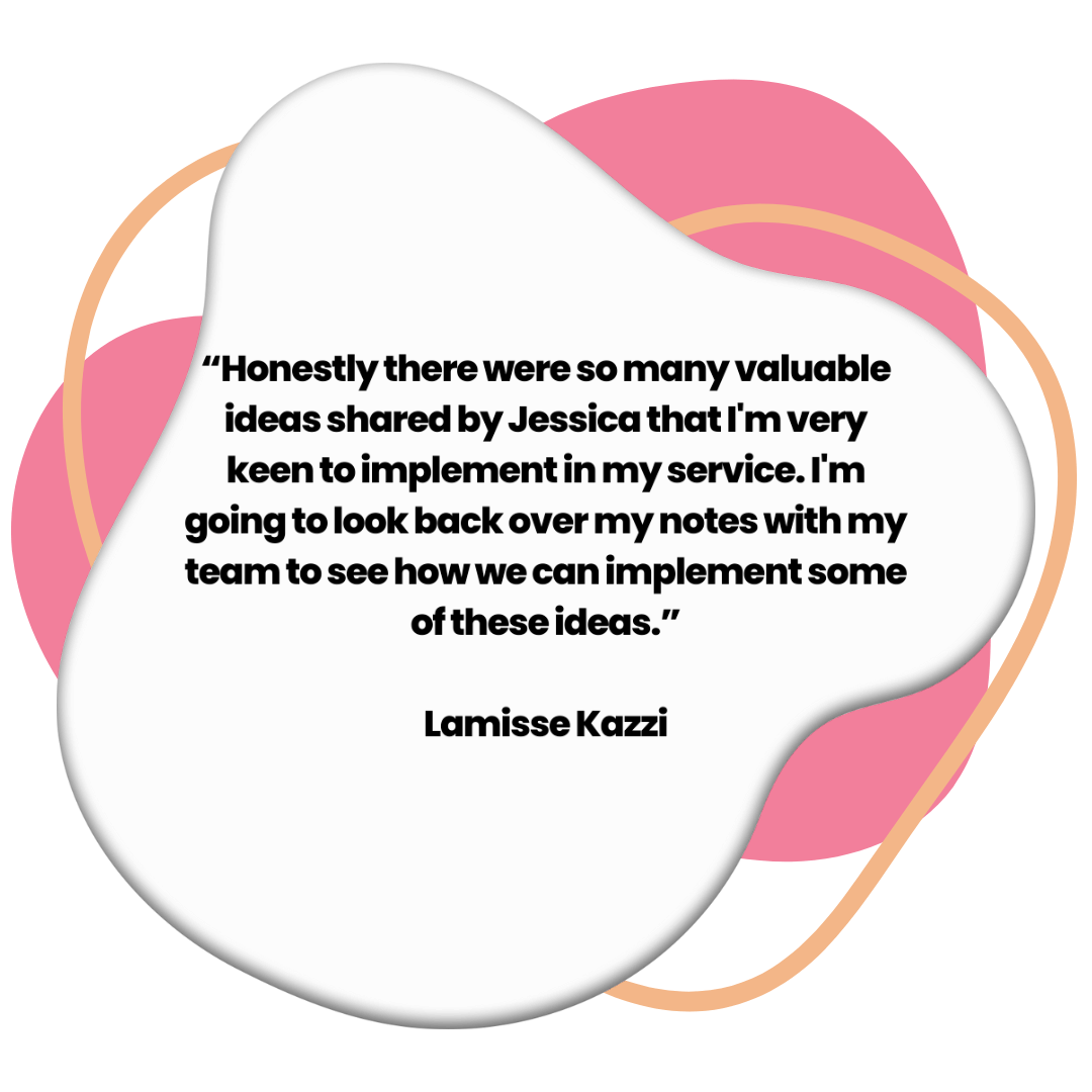 "I loved the training. I was inspired and motivated. I love how genuine and open Jessica is and her warm and inclusive teaching style. Thank you. It was brilliant"